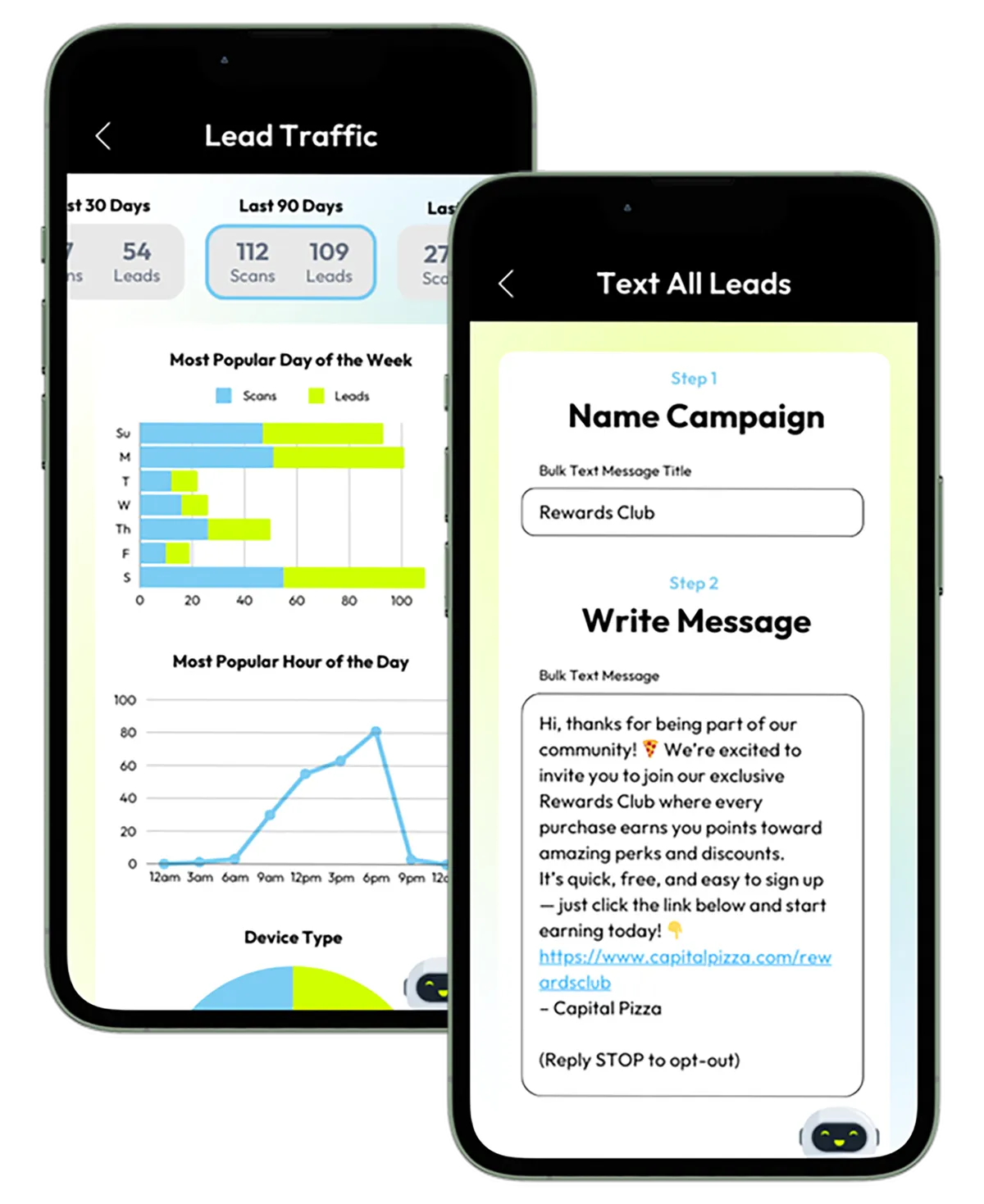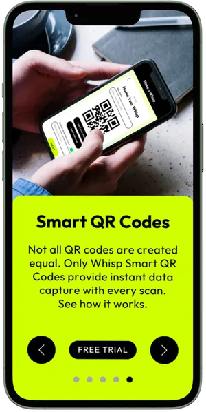 Dumb QR codes simply push out info and give nothing in return. Whisp is the only 2-way tech that provides a phone number with every scan.